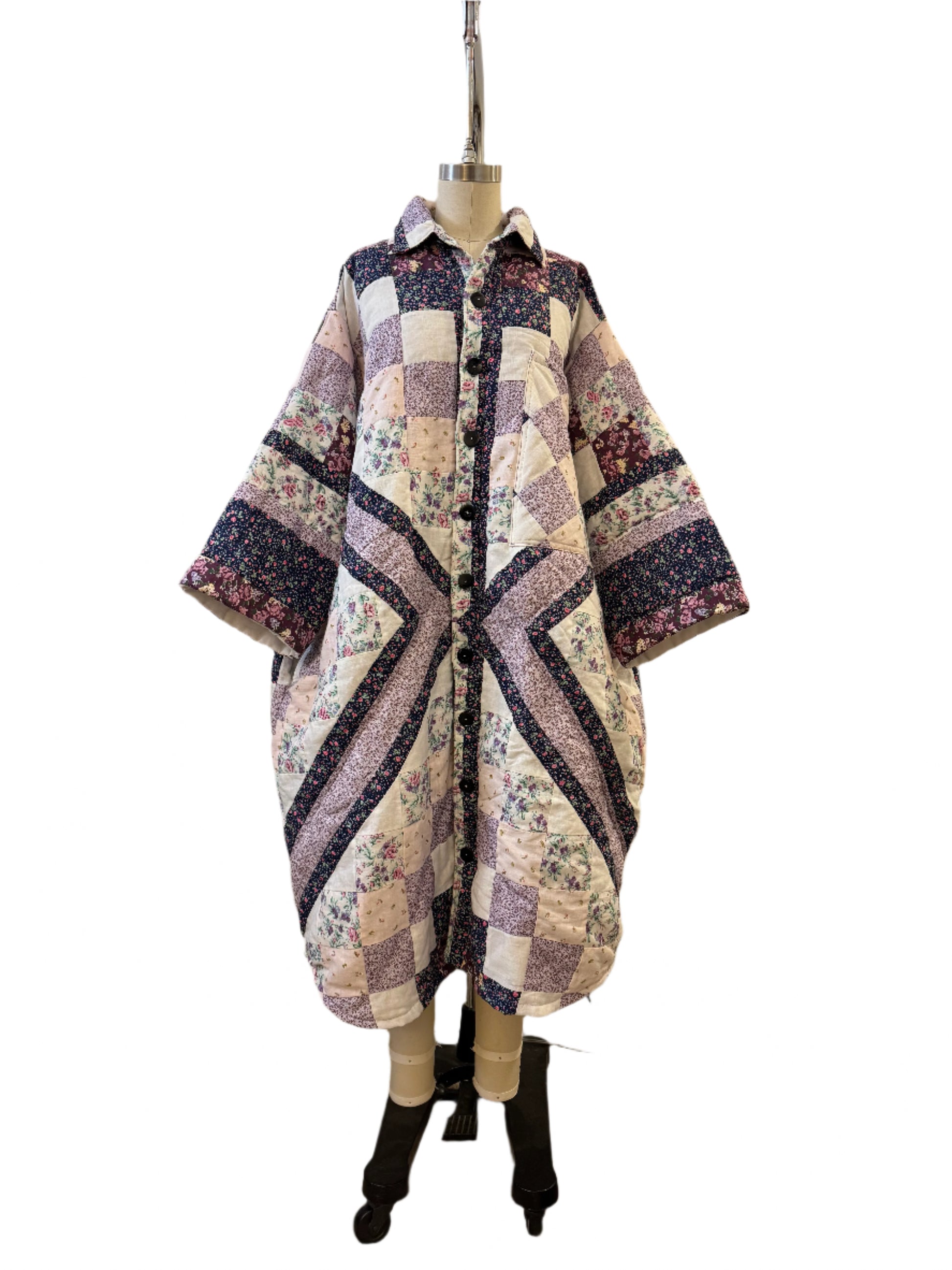 The Heritage Rework Overcoat is a contemporary outer layer cut from a reclaimed vintage quilt, thoughtfully transformed into a gender-neutral silhouette. Designed for ease and layering, the oversized fit features clean lines, functional side pockets, and subtle textural depth that speaks to the garment’s storied origin. Each piece is one of one—offering timeless comfort with a refined approach to circular design.